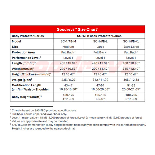 Goodrevs SAS-TEC SC-1/FB Series CE Level 1 Back Protector Insert. Genuine SAS-TEC · CE EN 1621-2 Level 1