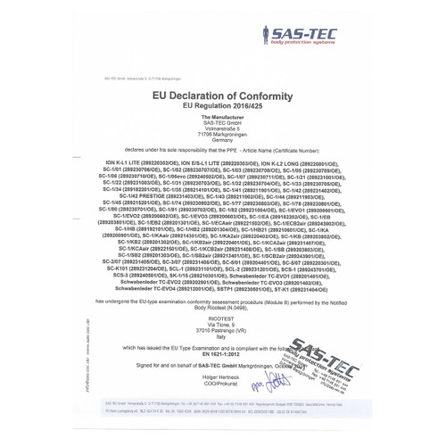 - Certification: CE EN 1621-1:2012 (Level 1)