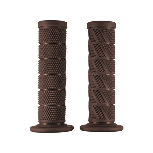 Built for riders who want comfort, style, and confident control. These vintage-inspired motorcycle grips feature a segmented rubber design with angled rib texture, delivering a more tactile, aggressive feel than traditional diamond patterns while maintaining long-ride comfort. The result is a clean Cafe Racer / JDM-influenced aesthetic paired with modern grip performance that stays secure mile after mile.