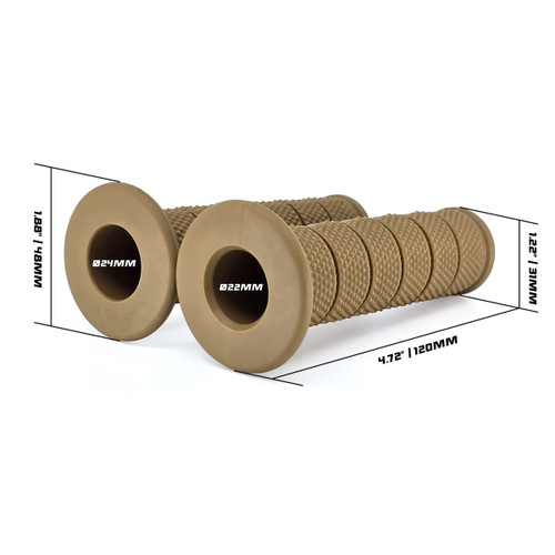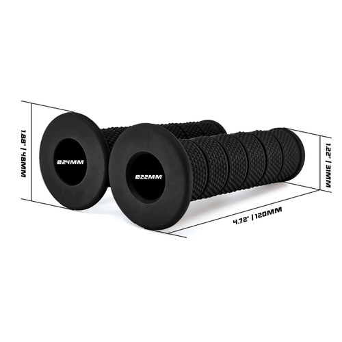 - Slide-on installation for standard 7/8” (22mm) handlebars and throttle tubes. Use rubber-safe installation aids only. Confirm handlebar and throttle tube dimensions before ordering and installation.
